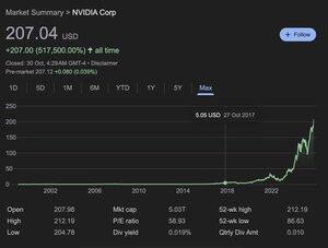 První akcie, kterou jsem kdy koupil, byla nvidia Udělal jsem 2x a cítil jsem se jako génius, ale kryptoměny rostly více, takže jsem prodal svou pozici, abych nakoupil více kryptoměn Právě jsem si to ověřil a mých 4000 akcií by dnes bylo 160 000 akcií po rozdělení 2 akcií Moje pozice by dnes 💀 měla hodnotu 32 milionů dolarů