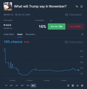 Podle Polymarketu je 16% šance, že Trump v listopadu řekne slovo N