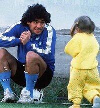 Dcera Diega Maradony trhá pro svého otce květiny, které hrdě nosí při tréninku (1989)