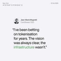 "Regulace se posunula. Trh je vnímavý. Kapitál se pohybuje." @jmmognetti, generální ředitel společnosti CoinShares