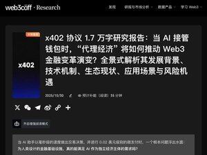 Protokol x402 přivádí platby agentů do fáze protokolizace a vytváří základ pro provádění hodnot a vrstvy důvěry pro ekonomiky AI a Web3. @Web3Caff_Res Tato výzkumná zpráva (od @0xClareYang) poskytuje hloubkovou analýzu platebního modelu protokolu x402, čtyřstupňového procesu a mechanismu plateb napříč řetězci a pojednává o jeho výzvách z hlediska ekologické expanze, bezpečnosti systému a dlouhodobé udržitelnosti. 📖 Přečtěte si více: