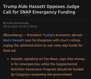 Kevin Hassett nesouhlasí s rozhodnutím soudce, že požadované dávky SNAP mají být vyplaceny.