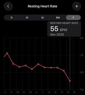 nejnižší klidová tepová frekvence, kterou jsem měl od sběru dat od roku 2017