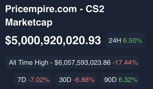 TRŽNÍ KAPITALIZACE SKINŮ CS2 ZÍSKALA 5 MILIARD DOLARŮ