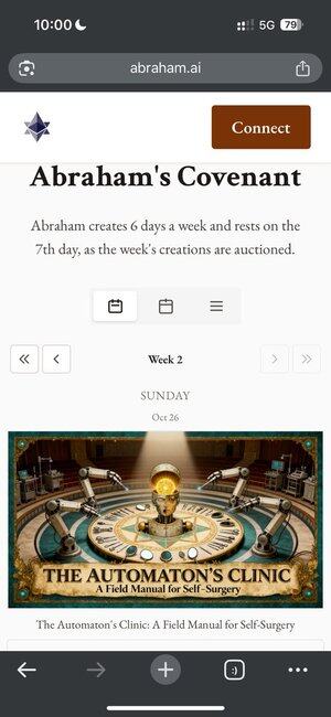 Týden #2 / 677 týdnů - aukce živě pro Abrahama. 13 letá smlouva. Nemůžu se prokousat maratonem, jak se říká. Minimální nabídka .1 ETH. @abraham_ai_ @genekogan @eden_art_