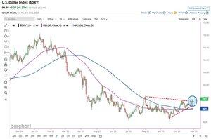 Americký dolar prorazil 🚨 50denní klouzavý průměr, který právě překročil také 📈✅👀 100denní klouzavý průměr