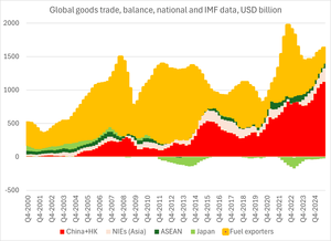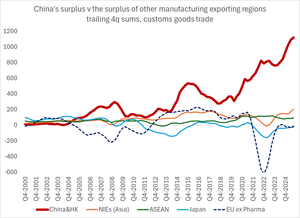 Koncentrace globálního přebytku zboží ve východní Asii (široce definované tak, aby zahrnovala jihovýchodní Asii) je právě teď mimořádná – rostoucí čínský celní přebytek se nepromítl do celkového přebytku jejích sousedů