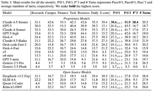 Sonet 4.5, GPT-5 a Grok4 si vedou dobře. Pozorují významné rozdíly mezi úspěšností Pass@3 a Passˆ3, což naznačuje pokrytí schopností, ale problémy s konzistencí.