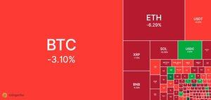 Celková tržní kapitalizace kryptoměn klesla o 3,9 % na 4měsíční minimum 3,54 bilionu USD.