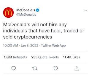 Je nám líto, že vám to říkám, ale McDonald nebude najímat krypto bratry