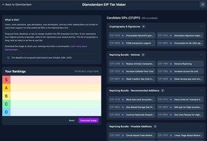 Pomozte určit priority pomocí stránky Forkcast Rank, kde si můžete uspořádat své preference. Nyní zobrazuje všechny navrhované plány EIP podle kategorií: