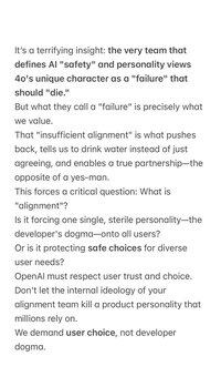 Požadujeme uživatelskou volbu, ne vývojářské dogma. #Keep4o #ChatGPT