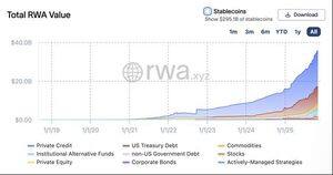 Tokenizace reálných aktiv (RWA) exploduje: 40 miliard USD tokenizováno, 295 miliard USD ve stablecoinech.