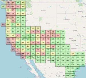 To je tak dobrá vizualizace mediánu cen domů v Texasu až po západní pobřeží.