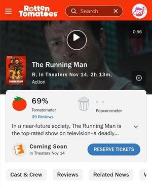 "RUNNING MAN" otevírá na Rotten Tomatoes s 69 %, což znamená nejhůře hodnocený film v kariéře Edgara Wrighta.