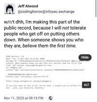 Poté Jeff Atwood (@codinghorror) zveřejnil snímek obrazovky e-mailu, který poslal.