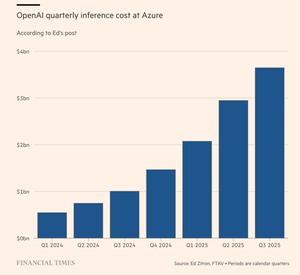 Účet OpenAI za odvozování Azure se nafukuje a nyní se blíží 4 miliardám dolarů za čtvrtletí, podle analýzy dat FT sdílených Edem Zitronem.