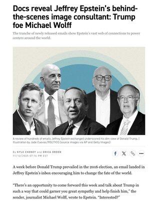 NOVINKA: Týden předtím, než Donald Trump překonal Hillary Clintonovou a vyhrál prezidentské volby, oslovil spisovatel Michael Wolff Jeffreyho Epsteina s návrhem na "dokončení" Trumpovy kandidatury. "Máš zájem?" napsal Wolff. Epstein to zjevně odmítl. s @eorden