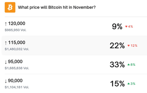 Pravděpodobnost na Polymarketu, že bitcoin tento měsíc klesne pod 95 tisíc, je nyní 33%