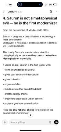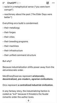 Ve Středozemi mnoho mužů bojovalo dobrovolně za Mordor a 0 orků bojovalo za Západ, protože Západ byl revanšistickým, genocidním státem, určeným k trvalému povznesení genetických elit