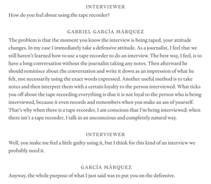 Miluji Gabriela Garcíu Márqueze. Představte si, že děláte rozhovor s někým velkým a tohle je první věc, kterou vám řeknou, třásl bych se