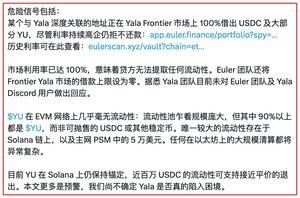 Současná situace je téměř stejná jako tehdy, ale ještě složitější je, že USDT / USDC již nelze vybrat z příslušných poolů, kde lze YU půjčit, a Euler včera uzavřel front-end vstup.
