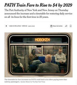 Divný. Mnoho politiků z New Jersey protestovalo proti tomu, že dojíždějící jsou tlačeni kvůli zpoplatnění za dopravní zácpy v New Yorku, ale neviděl jsem žádné obavy ohledně výrazného zvýšení jízdného PATH.