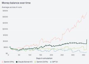 Gemini 3 Pro na novém nástroji Vending-Bench Arena 🤯 je s tímto modelem působivý.