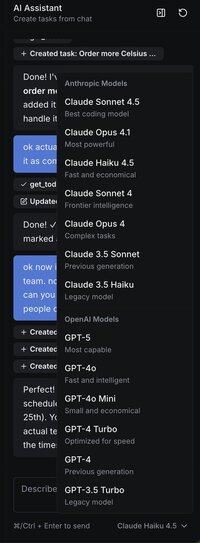 Prostě vložím do chatu spoustu nestrukturovaných věcí, AI zjistí, jaké úkoly vytvořit (nebo se mě na něco zeptá), nastaví prioritu a pak dynamicky aktualizuje můj seznam "Dnes" podle naléhavosti a odhadovaného času na dokončení úkolu.