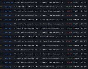 Tato PEPE velryba s ziskem 36 milionů dolarů "ThisWillMakeYouLoveAgain" koupila 8,93 milionu $ASTER (12,42 milionu dolarů) s průměrnou cenou 0,98 dolaru a nyní má přes 3,67 milionu dolarů v nerealizovaných ziskech.