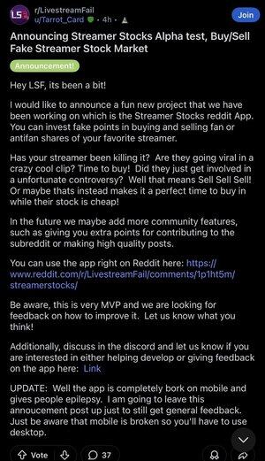 "Můžete investovat falešné body do nákupu nebo prodeje fanouškovských či antifanouškovských akcií vašeho oblíbeného streamera"