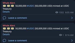 Stable Coin Mint: Před 10 minutami vydáno @circle 100 milionů $USDC @ethereum