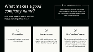 V The Review @hiiamArielle napsala esej, která velmi podrobně rozebírá její proces při vymýšlení názvů firem.