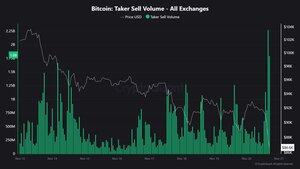 Objem prodeje Bitcoin Taker právě za posledních 5 hodin dosáhl 6,0 miliardy dolarů – jeden z největších intradenních výkyvů v posledních týdnech.