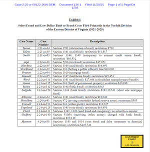 Jak ukazuje její podání, ve východním okrese Virginie jsou běžně podávány trestní stíhání za podvody ohledně podobných částek peněz.