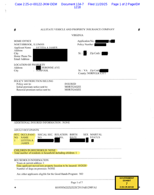 V jiné žádosti o pojištění James tvrdil, že dům v Norfolku obýval jediný dospělý bez dětí.