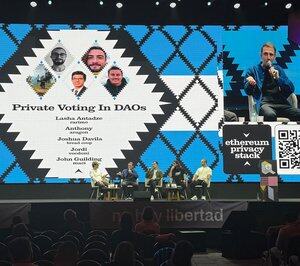 Soukromé hlasování v DAO Panel na @EFDevcon Ethereum Privacy Stack @LashaAntadze x @Rarimo_protocol @antonyleu @A_Leutenegger x @AragonProject @jordipainan x @vocdoni @john_guilding x @zkMACI @TBSocialist x @breadcoop