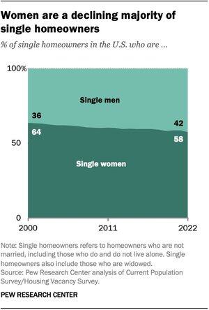 Více svobodných žen vlastní domy než svobodných mužů. Zajímavý.