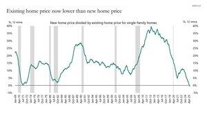 "Poprvé za více než 50 let je cena nového rodinného domu nižší než průměrná cena stávajícího rodinného domu, viz graf níže."
