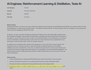 🚨 Průlomové: Tesla najímá inženýry destilace AI, kteří komprimují velké modely do menších, jež mohou běžet na inferenčním hardwaru v autech.