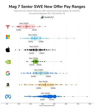 Zajímavý. $META platí seniorní softwarové inženýry nejvíc a $TSLA nejméně.