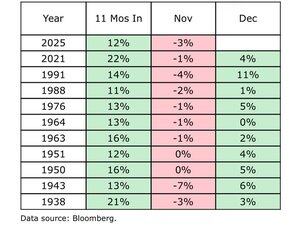 Roky vzestupu a poklesy v listopadu často dobře přicházejí na prosinec. $SPY