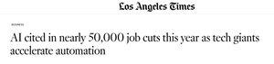 "Po většinu boomu AI se mnoho firem vyhýbalo přisuzování propouštění umělé inteligenci ze strachu z negativních titulků. V posledních měsících však velké firmy napříč odvětvími a geografickými regiony hlasitěji tvrdí, že AI jim umožňuje propouštět zaměstnance a snižovat nábor."