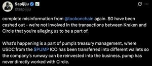 🚨 NYNÍ: @Pumpfun se staví proti tvrzením Lookonchainu, označuje zprávu za "dezinformaci" a tvrdí, že nedávné pohyby USDC byly pouze součástí vnitřního řízení státní pokladny. Lookonchain tvrdil, že od 15. října bylo Krakenu posláno 436,5 milionu USDC a že 4,19 milionu SOL (757 milionů dolarů) bylo prodáno, převážně přes Kraken.