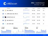 Nejlepší x402 servery za posledních 24 hodin a 7 dní (17. 11. - 24. 11.):