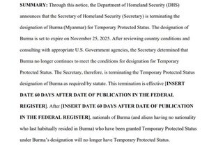 Trumpova administrativa oznámila, že ukončí další imigrační program s dočasným chráněným statusem, tentokrát pro téměř 4 000 imigrantů z Myanmaru, země v jihovýchodní Asii, která byla v posledních letech pohlcena občanskou válkou. -CBS