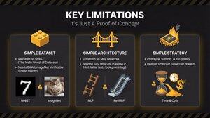 Článek odráží první důkaz konceptu, a ano, celý nápad má *mnoho* omezení. Zvlášť jak výpočetně plýtvavý je ten ráčna, nebo že byl na datové sadě MNIST (hračka) a ne na ImageNetu. Ale dobrá zpráva! První testy ResMLP ukazují slibné výsledky!