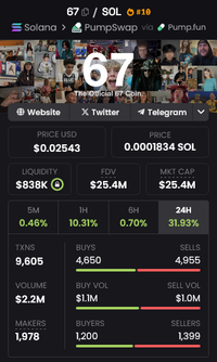 NOVINKA: $67 je za posledních 24 hodin o 31,93 % vyšší a míří na cestu k testování hranice $30 milionů.