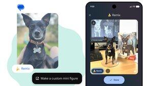 Nyní můžete upravovat a znovu si představovat jakoukoli fotografii přímo v Google Messages pomocí Remixu. 🍌 Remix, který vychází tento měsíc, využívá náš model Nano Banana Gemini, který vám pomůže dělat vše od přestavby místností až po přeměnu štěňat na akční figurky. Stačí dlouhým kliknutím v chatu kliknout na fotku a zobrazit tlačítko Remix, nebo si vybrat jednu z galerie a začít.