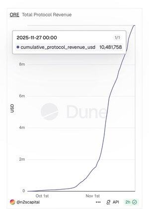 ORE vygenerovala během dvou měsíců více než 10 milionů dolarů z příjmů z protokolu.